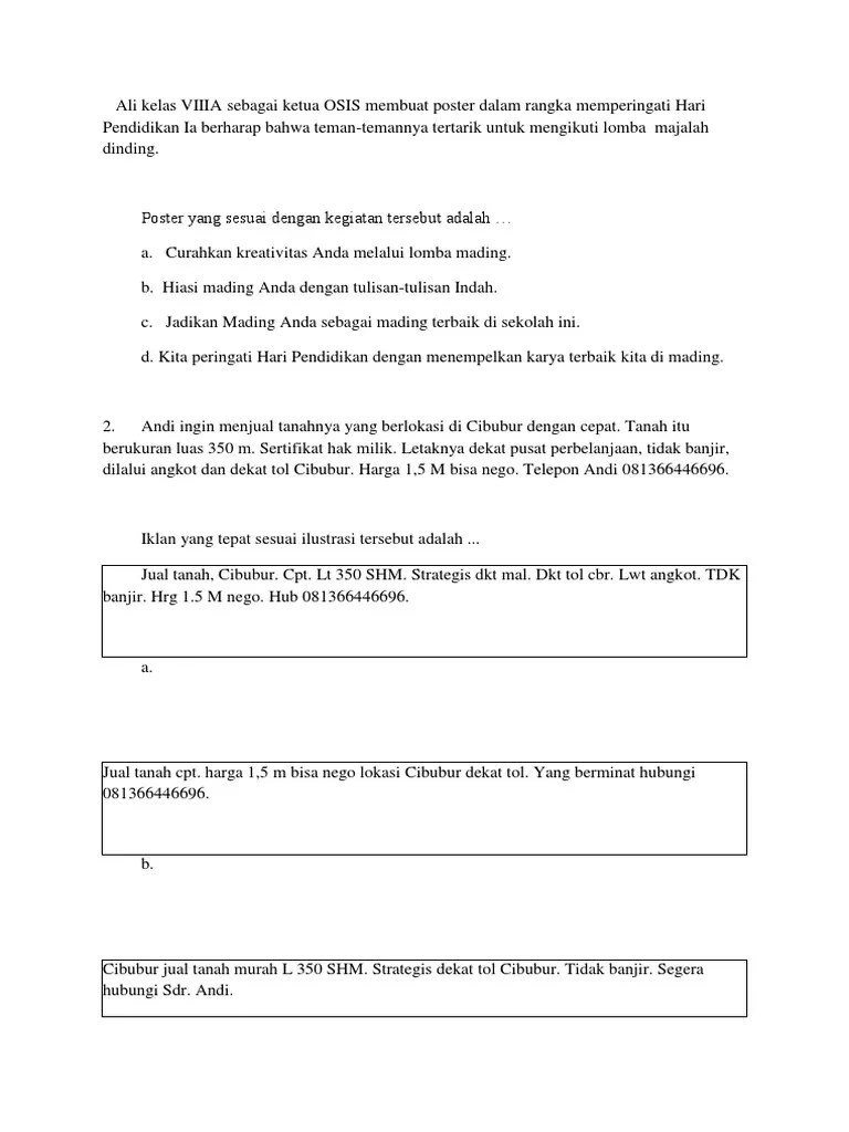 Soal Uts Kelas 6 Bahasa Indonesia Tentang Iklan Poster - 60 Contoh Soal Teks Iklan Dan Kunci Jawaban Bahasa Indonesia Kelas Viii Revisi : Kata yang sudah sesuai dengan ejaan bahasa indonesia contoh.